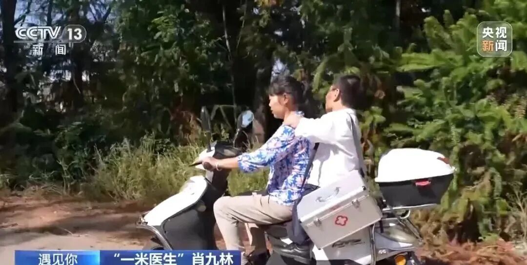近的地方,黄淑珍陪着走,远的地方,她骑电动车载着肖九林。遇到车无法通行的路,黄淑珍就背起丈夫。30多年来,无论白天黑夜、刮风下雨,只要村民有需要,她都会陪着丈夫出诊,两个人共同守护着2000多人的健康。