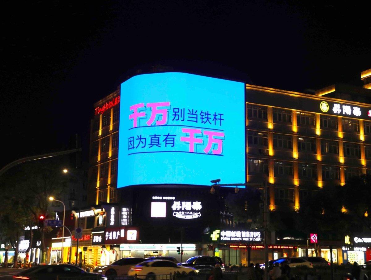 这几天,宁波鼓楼、三江口等核心商圈的城市大屏上,“悬赏令,一千万”的巨幅标语引发市民驻足。同步滚动播放的“千万别当铁杆,因为真有千万”“紧急寻人!悬赏10000000”等提示,非但未解疑惑,反而进一步激发公众好奇心。相关画面迅速在社交平台传播,成为全城热议话题。