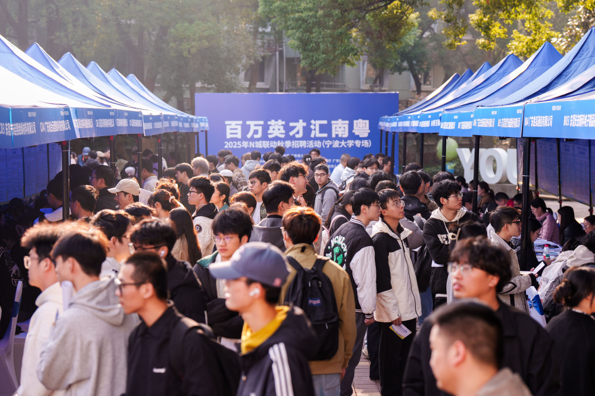 跨越1300多公里,75家粤企携诚意而来——今天下午,“百万英才汇南粤”2025年N城联动秋季招聘活动在宁波大学拉开帷幕。