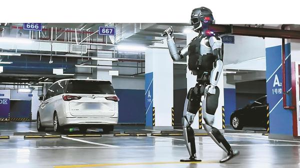 当身高1.8米的“机械战警”手握手电筒,在停车场自如巡逻并向你打招呼——这样一度只存在于科幻电影的画面,正随着人形机器人加速融入多元生产生活场景,逐渐走进宁波的现实。