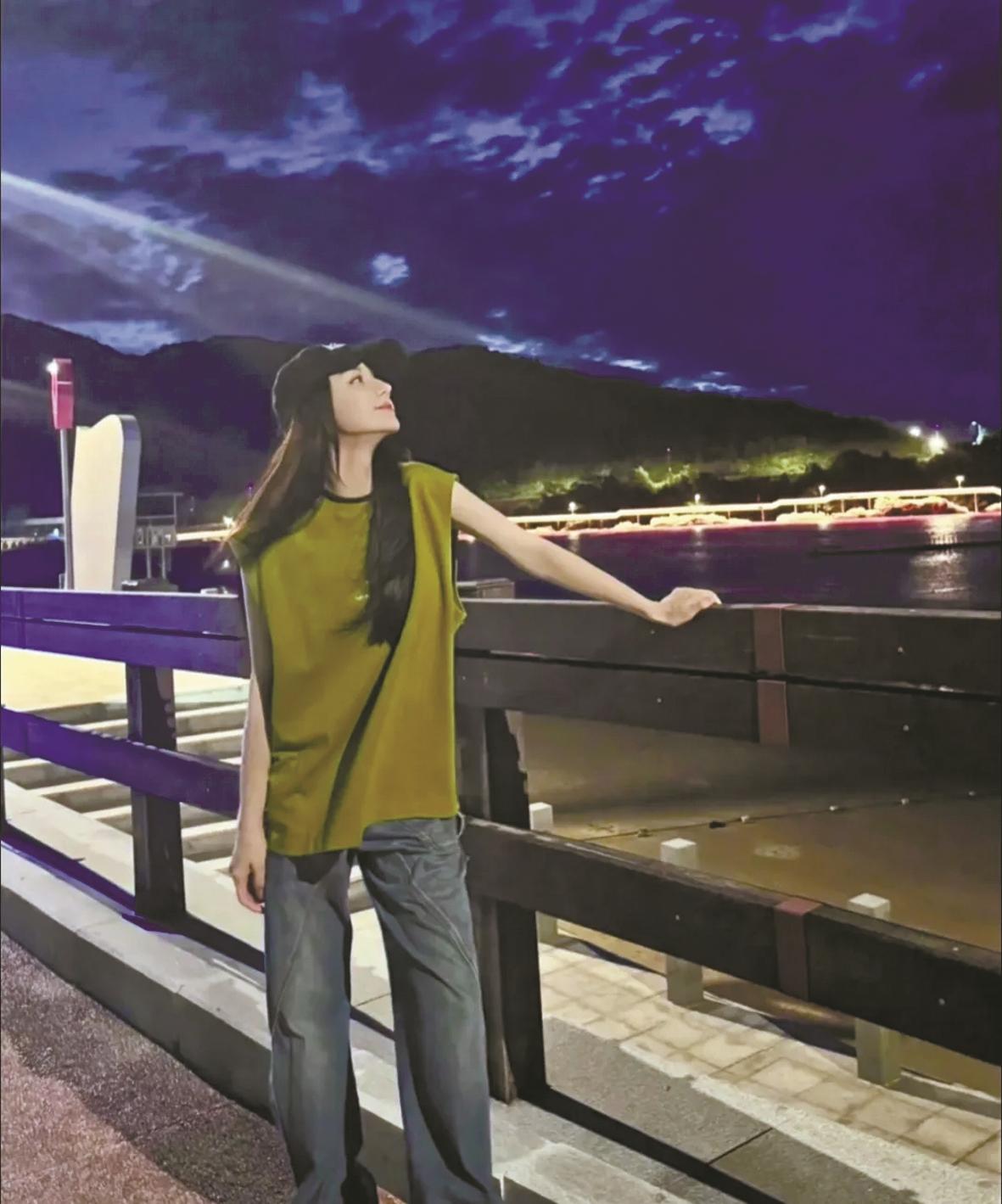 迪丽热巴发在微博上的在松兰山留影。