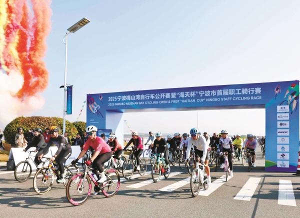海风轻拂,车轮飞旋。昨天,2025宁波梅山湾自行车公开赛暨“海天杯”宁波市首届职工骑行赛在梅山湾激情上演。