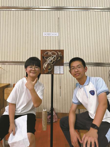 目前,俞铄炎、卢煜少两位获奖选手已顺利升入初中。三年里,10余名学生参与到机械摆钟的设计与制作中。已毕业的学长们留下的笔记里,密密麻麻记着“齿轮齿数=传动比×从动轮齿数”“摆长25cm时频率最稳”等关键数据,成为学弟们的“攻关秘籍”。如今这台升级多次的摆钟,完全能当作日常钟表使用。