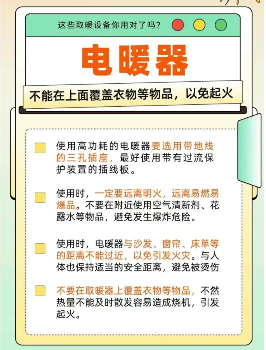 天气渐冷,又到了各类取暖神器“集合”的时候。不过,若使用不慎,也会埋下安全隐患甚至引发火情。