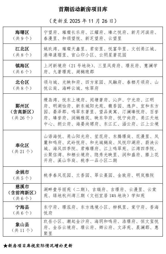 后续,“以旧换新”活动新房项目库还将纳入更多新开楼盘。