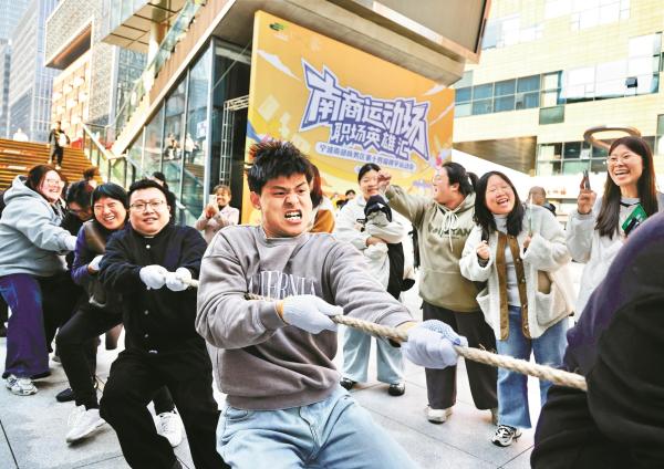 昨天中午,宁波南部商务区楼宇运动会火爆开赛,20支企业白领战队齐聚赛场,以运动为媒,凝聚活力、联结情谊。