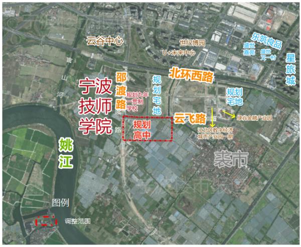 规划新建高中的西侧区域,已确定将宁波技师学院迁建于此,迁建工程估算总投资约25.81亿元。