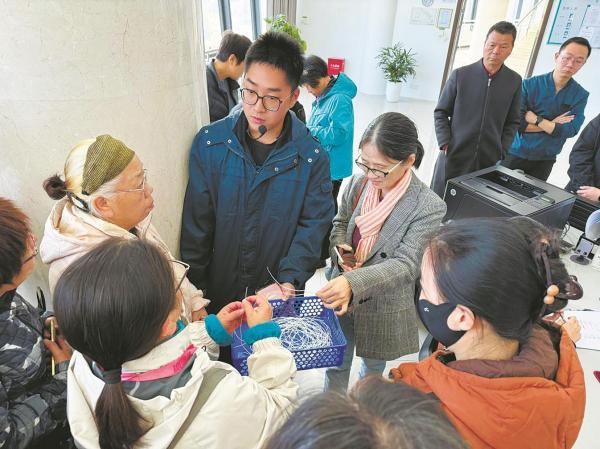 工作人员现场介绍超滤膜中的纤维膜丝。(仇龙杰/摄)