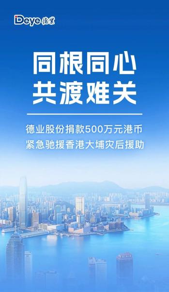 德业股份通过公众号发布消息,决定捐赠500万港元,专项用于火灾的医疗救助、灾后人员安置及重建等工作。