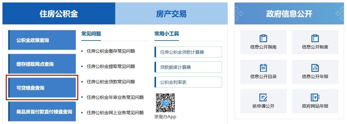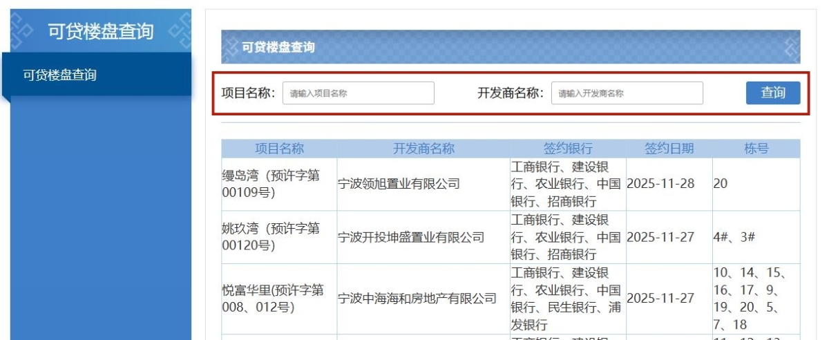 日常,市民如需了解某一新建商品住宅项目的某一楼幢是否支持住房公积金贷款,可进入宁波市住建局官网(zjw.ningbo.gov.cn),在首页“住房公积金”模块中点击进入“可贷楼盘查询”,即可通过“项目名称”或“开发商名称”搜索了解。