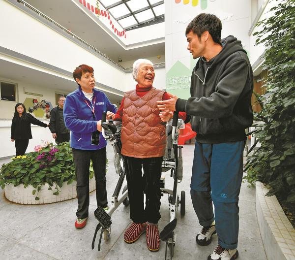 11月27日,我市首家5A级居家养老服务中心——鄞州区中河街道综合为老服务中心内,88岁的管秀菊老人在试用智能助行机器人后点赞。中心以睡眠心率带、智慧呼叫铃、“长者码”等智慧设备为服务“新武器”,实现健康预警、订餐定制等功能,让养老充满科技温度。(甬派客户端宁波日报 王博 曾家宇 摄)
