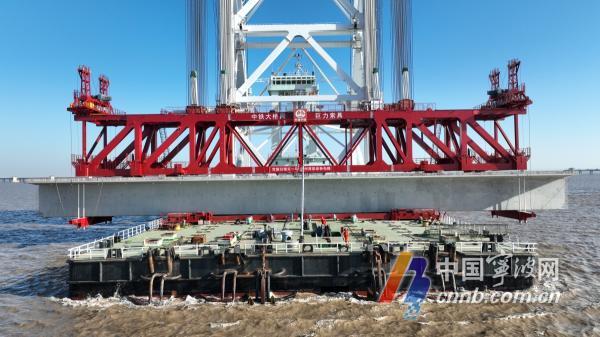 “杭州湾全年六级以上大风天数在180天左右,风大浪高,施工难度与安全风险极大。”中交二航局杭州湾跨海大桥常务副经理张伟表示,项目部精准把握高平潮窗口期开展架设作业,后期计划对部分浅水域实施清淤,全力保障施工安全与质量。