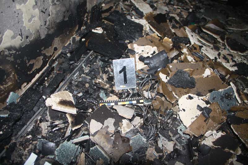 消防队员到场后,用高压水枪持续喷射25分钟后,明火才被扑灭。此时,居民家中已面目全非——墙壁漆黑如炭,木门全部碳化。