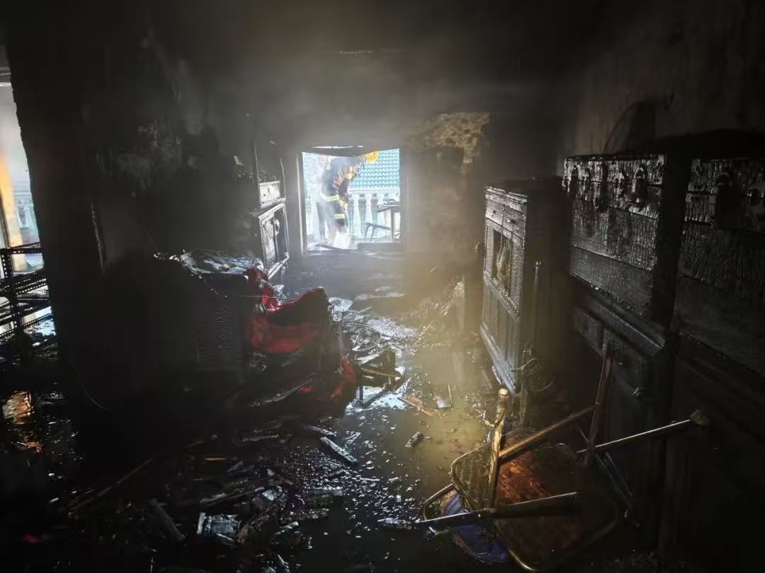 11月20日,镇海区一自建房顶楼房间突然起火。接到报警后,消防队员迅速赶到现场展开扑救,很快便将火扑灭。现场无人员伤亡,但屋内被烧得一片狼藉。