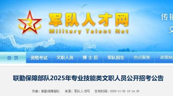 根据《中国人民解放军文职人员条例》及有关政策规定,现将联勤保障部队2025年专业技能类文职人员公开招考有关事项公告如下: