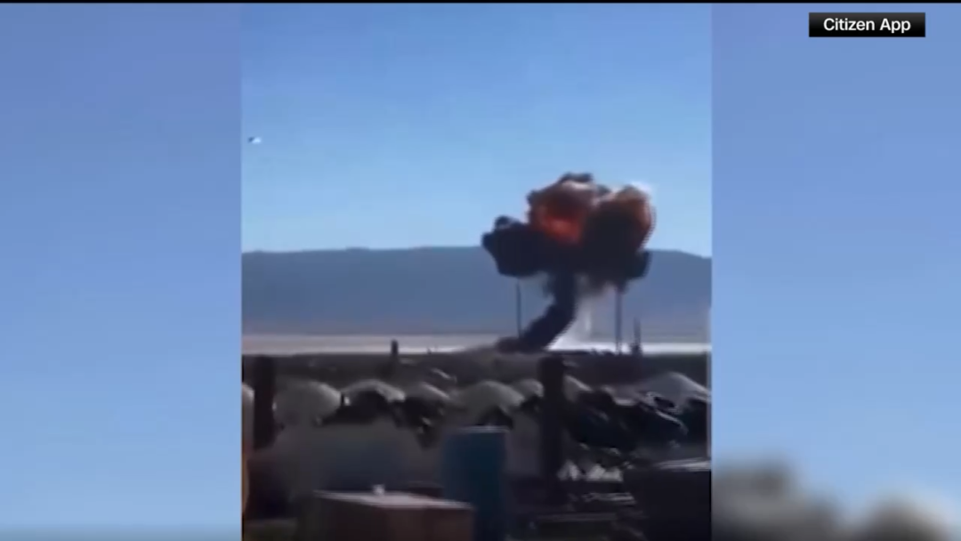 这是当地时间12月3日美空军飞行表演队战机爆炸画面。画面来自CNN
