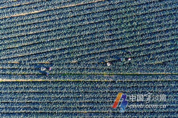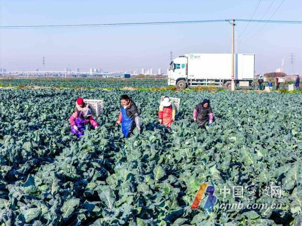 这几日,前湾新区庵东镇东三片区千亩盐碱地西蓝花迎来丰收季,村民们正忙着收割、装运,田间地头一派繁忙景象。