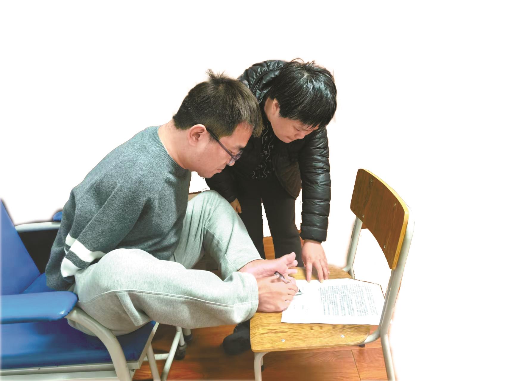 屠欢杰在《宁海县九九公益服务中心公益形象代言人知情同意书》上签字。(吴向正摄)