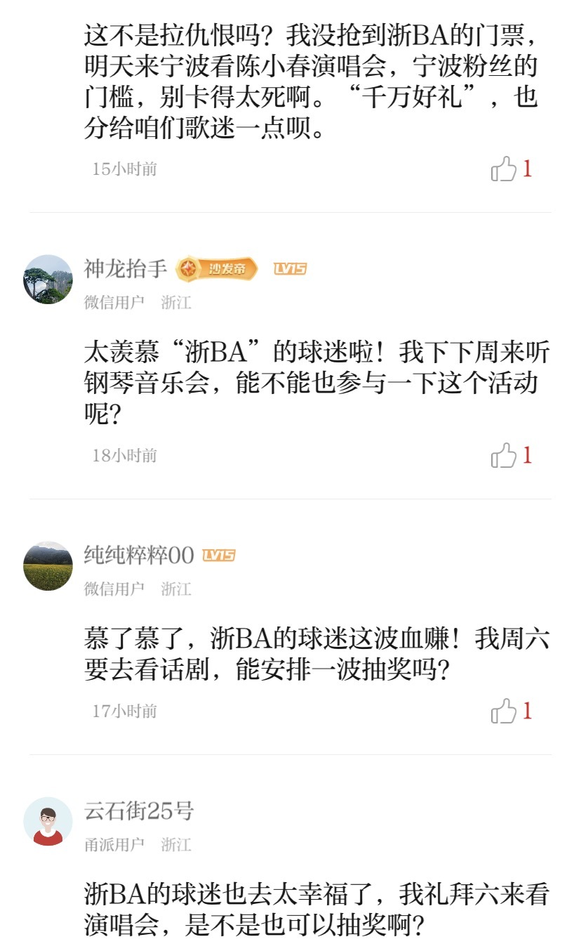 “‘宁波粉丝’的门槛,别卡得太死啊。‘千万好礼’,也分给歌迷一点呗。”他半开玩笑地在评论区说道。