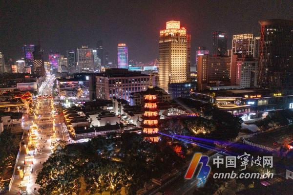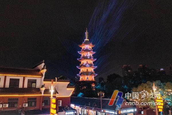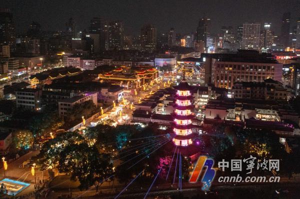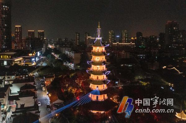 这两天,不少路过城隍庙的市民发现,宁波“老地标”天封塔亮灯了。绚丽的灯光从塔身层层晕染开来,勾勒出整座天封塔的轮廓,吸引了不少市民游客驻足。