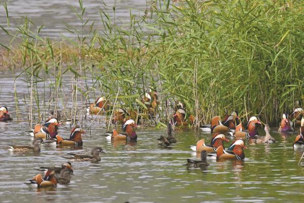 而在郊外的水库与湖泊,如荪湖水库、英雄水库、东钱湖等,还常能见到美丽的鸳鸯,非常值得去寻找、观赏。特别是离市区很近的荪湖,可谓名副其实的“鸳鸯湖”。近十几年来,几乎每年都有两三百只野生鸳鸯在荪湖越冬,今年也不例外。