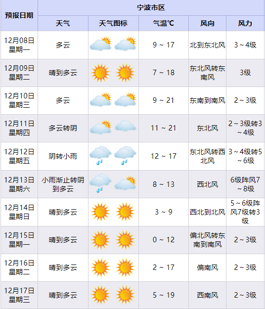 未来十天,我市依旧晴多雨少,气温跌宕起伏。图源:宁波气象