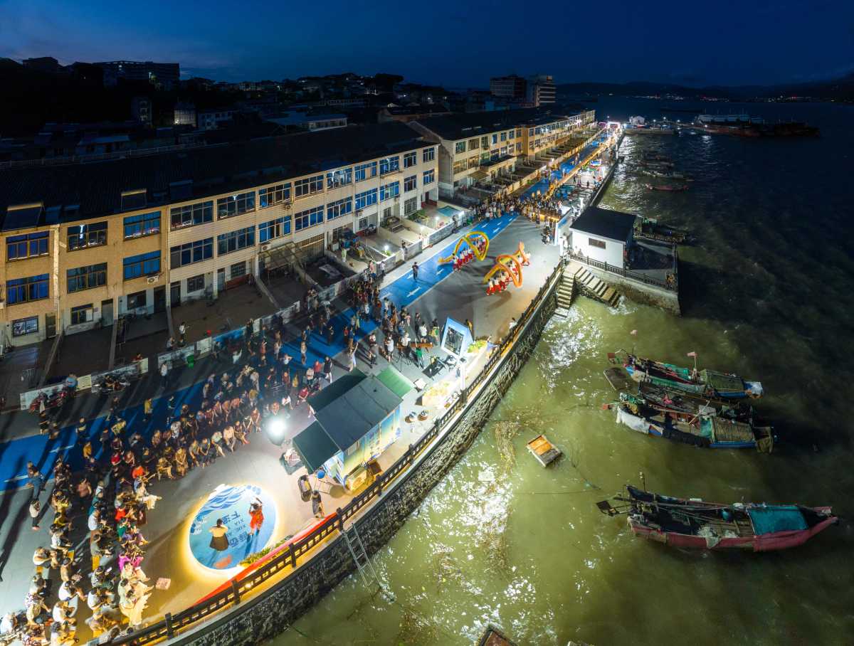 “‘乡村舞台’作为我们村里的文化IP,既让村民拥有了自我展示的平台,又激发了乡村活力。”下渔村党支部副书记薛瑞岳说,滨海游步道建成后,村里结合渔村文化、乡村旅游等元素,打造了“乡村舞台”主题夜市,热闹的场景吸引游客纷至沓来。