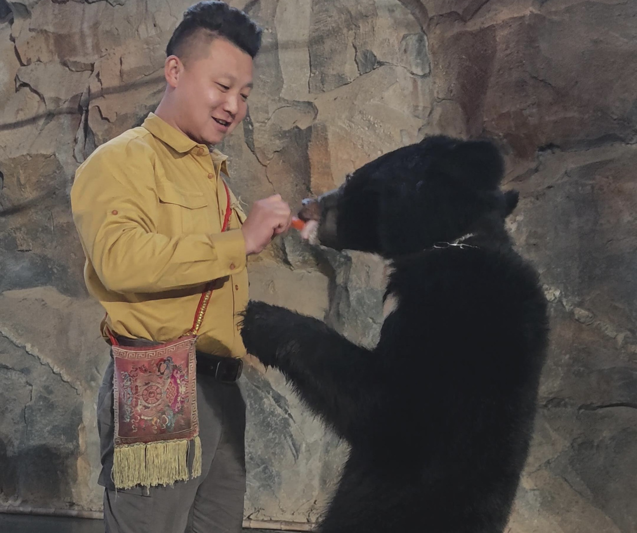 4年前,周家振成为这只黑熊的驯养师,并为它取名“熊二”。“‘熊二’性格憨厚温和,但也特别贪吃、调皮。”周家振说。