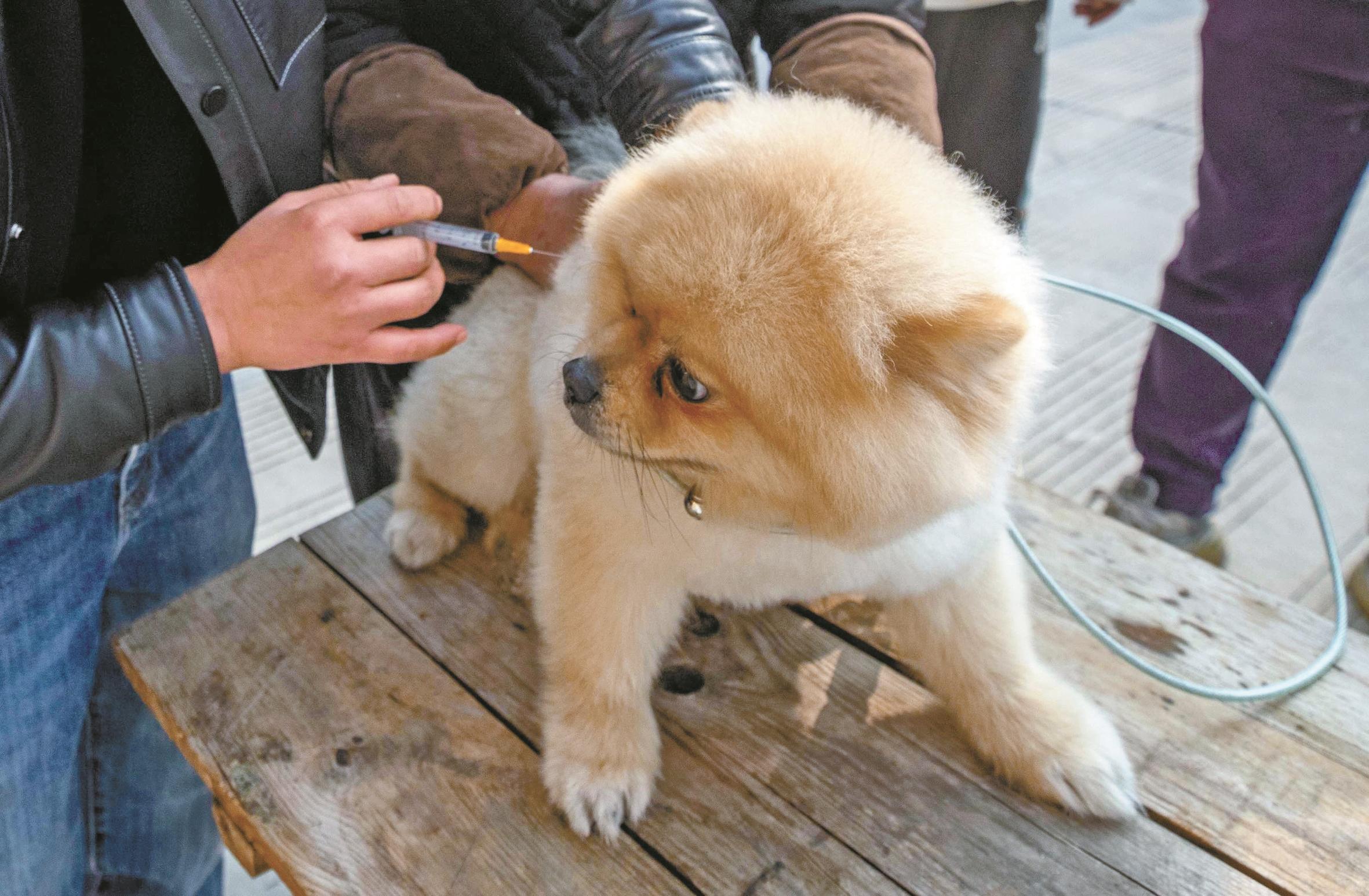 昨日,海曙区农业机械化管理站在横街镇东村村开展人畜共患病防控宣传活动,重点普及狂犬病防控知识。活动现场,工作人员同时提供便民服务,为犬只免费接种疫苗。(徐能张昊桦倪雨辰摄)