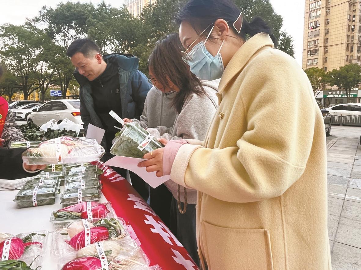 活动现场,景象热闹。当装满翠绿蔬菜的“椿萱菜篮”一一陈列出来时,立刻吸引了大家的目光。这场活动以“椿萱鲜蔬品鉴情暖北仑邻里”为主题,核心内容便是“椿萱菜篮”的售卖与推广。
