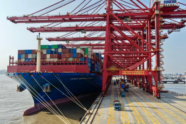 图为12月2日,宁波舟山港年集装箱吞吐量突破4000万标箱
