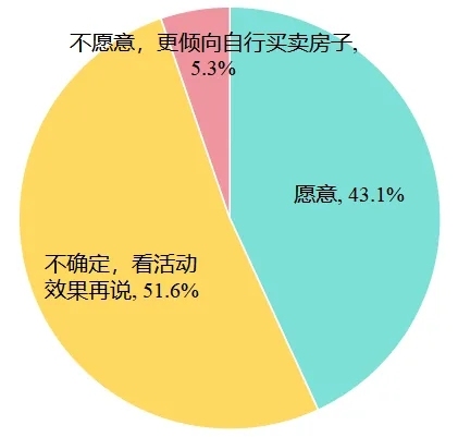 建立更公开、公正的旧房价格评估机制,确保旧房价格科学合理,成为受访者对活动优化的首要期盼。近六成(59.7%)受访者表示,若旧房评估价格达到或接近市场价位,将显著提升其参与意愿。