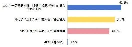 活动影响受访者购房意愿的因素,主要包括:活动提供了一定的购房补贴,降低了换房过程中的资金压力和风险;活动简化了“卖旧买新”的流程,省心省力;活动缩短了旧房出售周期,加快了换房速度。