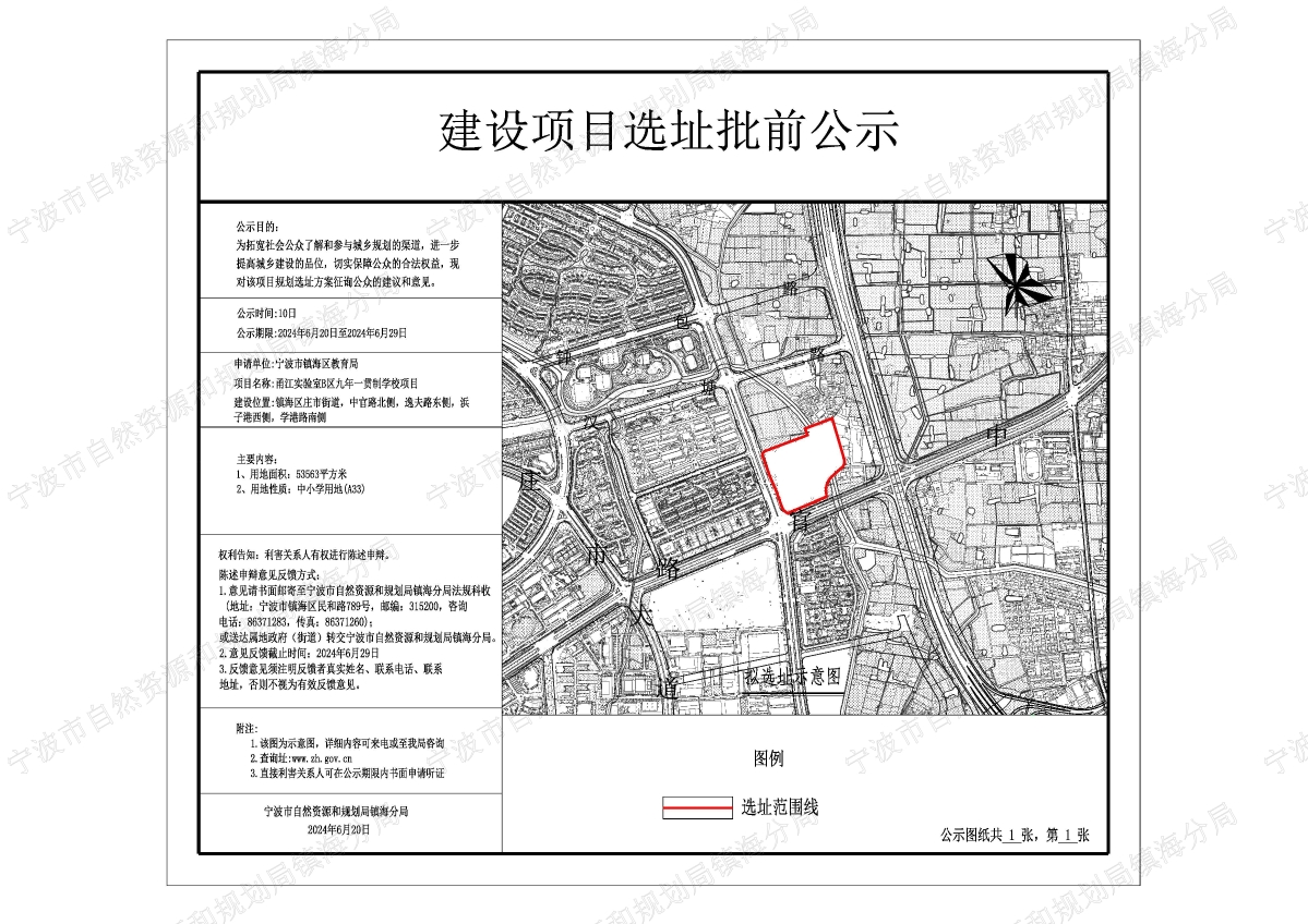 甬江实验室(B区)九年一贯制学校项目。图片来源:宁波市自然资源和规划局镇海分局。