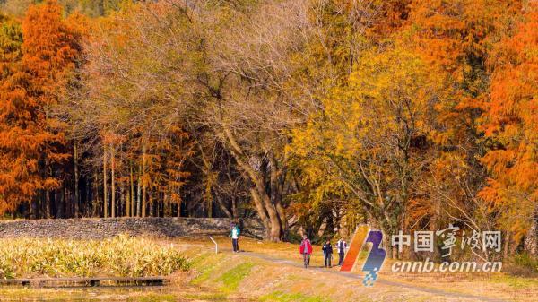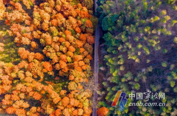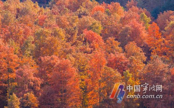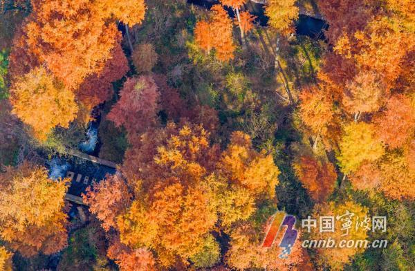这几日,甬城天气晴好。海曙区章水镇童皎村的水杉林全面转红,迎来一年中最佳观赏期。
