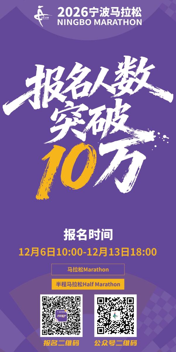 据悉,报名通道将于2025年12月13日18时关闭,抽签结果将于2025年12月21日公布。选手可通过2026宁波马拉松官方网站或官方合作App(数字心动)查询报名信息和状态。
