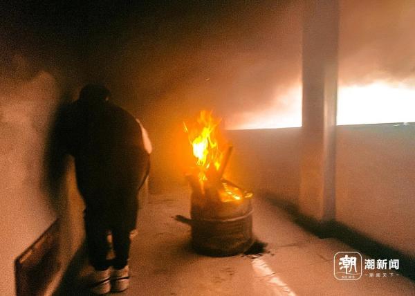 体验中,消防员分三次点燃了杂物、电动自行车等物品,模拟真实发生火灾时的情况。