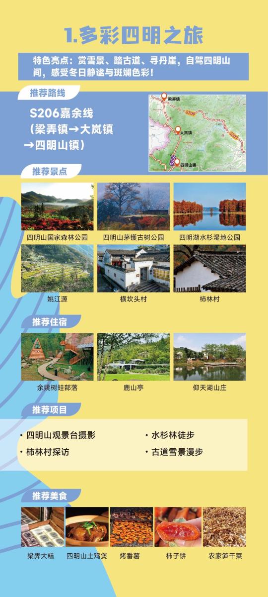 推荐项目:四明山观景台摄影、水杉林徒步、柿林村探访、古道雪景漫步