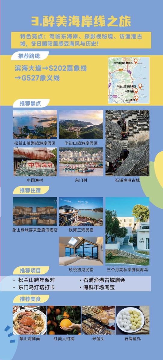 推荐项目:松兰山跨年派对、石浦渔港古城庙会、东门岛灯塔打卡、海鲜市场淘宝
