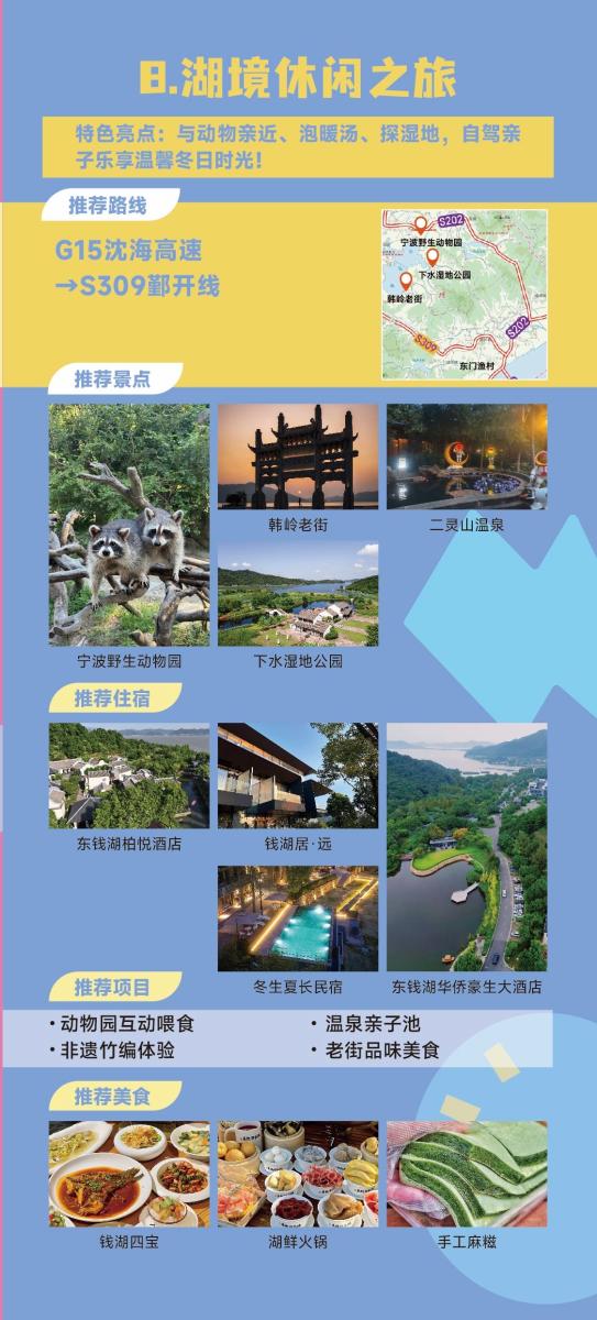 推荐景点:宁波野生动物园、韩岭老街、二灵山温泉、下水湿地公园