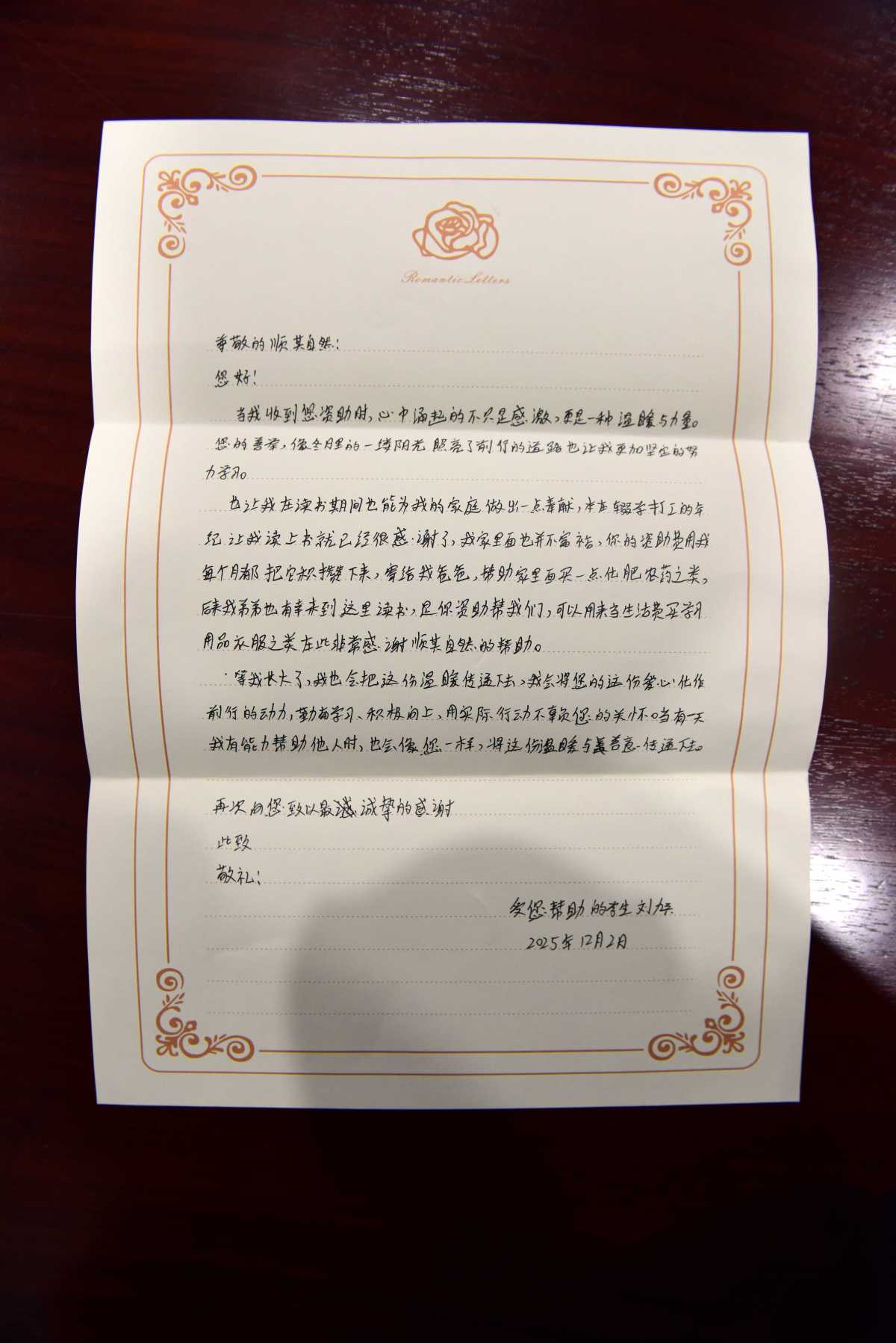 “它是食堂里的一份荤菜,是月底不用再向家里伸手的踏实,是能安心买下专业参考书的底气,更是熬夜赶作业时,一想到有人在默默为我们撑腰,就又能咬牙坚持的温暖……”学生杨晓珍在信中吐露的心声,也是不少受助学子的共同感受。