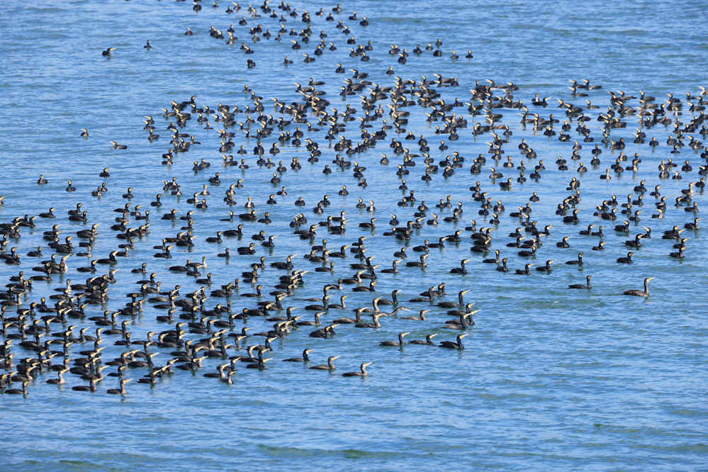每到秋末冬初,都会有大量候鸟抵达北仑梅山湾,它们将在这里度过冬天,明年早春再陆续北返。其中,鸬鹚的数量极其庞大,看上去乌压压一大片,非常引人注目。