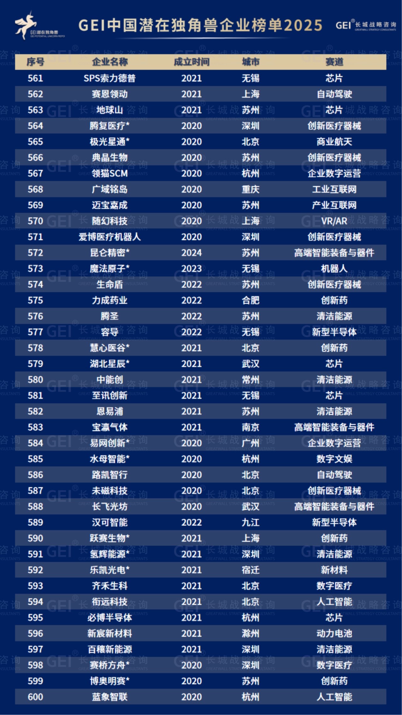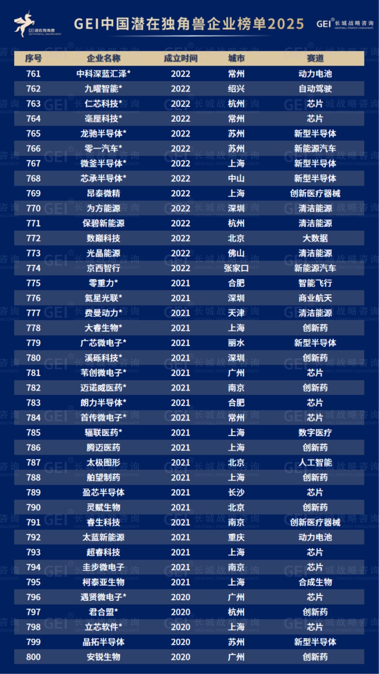日前,中国知名民营智库——长城战略咨询发布《GEI中国潜在独角兽企业榜单2025》(以下简称《榜单》),展示中国816家“潜在独角兽”企业的发展趋势。