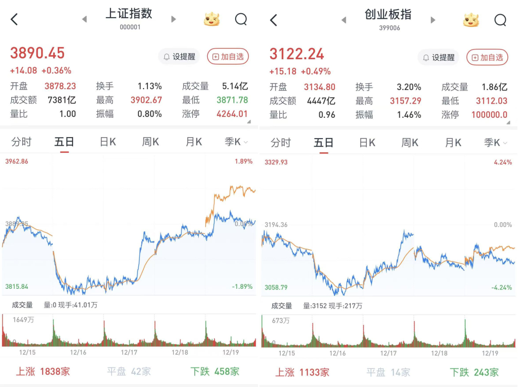 A股三大股指12月19日集体小幅高开。盘初短暂停留后,大消费走强带动股指早盘强势上攻。午后震荡回落,涨幅明显收窄。