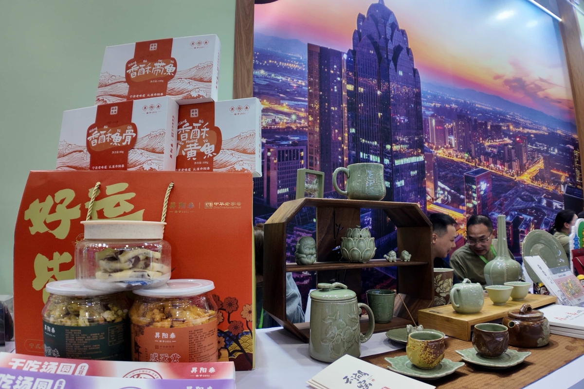 非遗技艺则化身生活美物,融入现代审美:江北的非遗青瓷温润如玉,镇海“一路连科”文创传递吉祥寓意……传统技艺以香薰、挂饰、摆件等形式,构成引人驻足的“文化聚落”。同时,奉化“弥勒小和尚”玩偶、宁海“宁宝”文创周边、东钱湖阿拉贝儿玩偶挂件、前湾的“黑脸琵琶”IP、余姚的阳明书法手提袋等系列文创产品,以轻巧设计激发游客的收藏与分享欲。