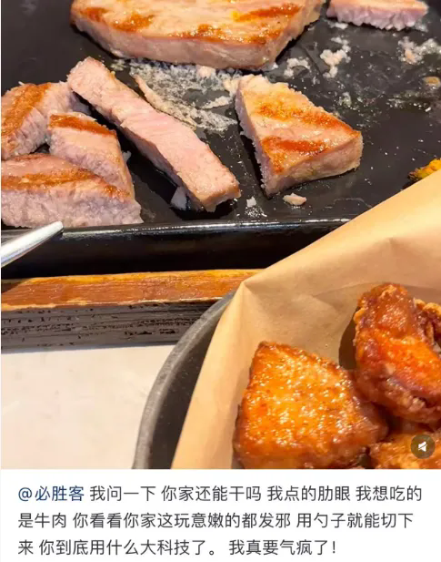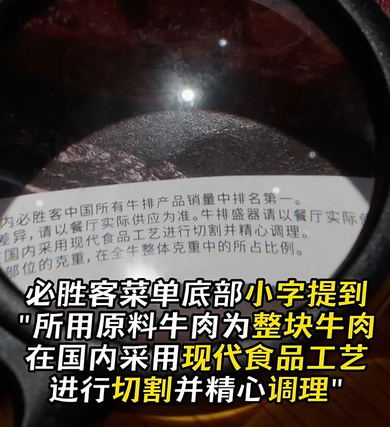 日前,有网友发现,在连锁餐厅必胜客吃到的牛排,和菜单上的图片差距巨大,口感也有些奇怪,这到底用的是什么肉?