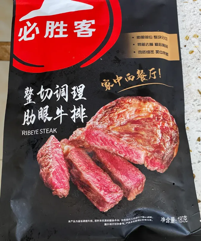 而那位必胜客店员提供的牛排包装上,标注的执行标准正是GB19295,也就是说必胜客用的是调理牛排。