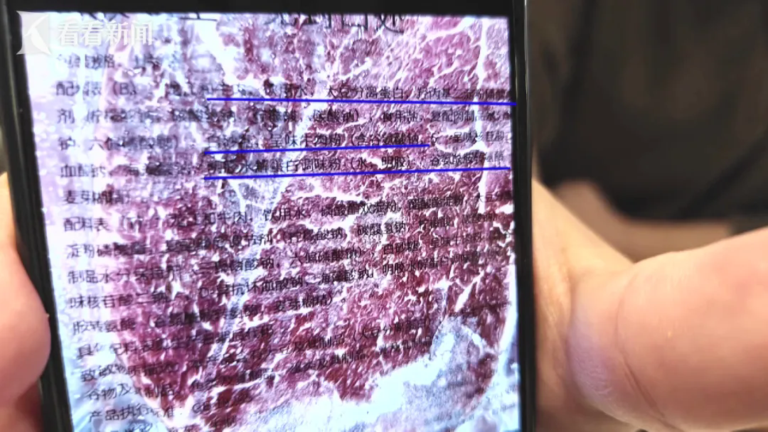 静安MOHO店店员肯定地说:“配料表里除了牛肉没东西,就是牛肉……写的就是西冷牛排。”