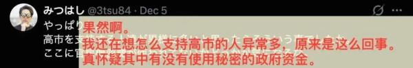 也有人质疑当前舆论环境,认为这就是高市上台后虽没有什么特别的政绩,网络上对她却有不少“力挺”的原因。