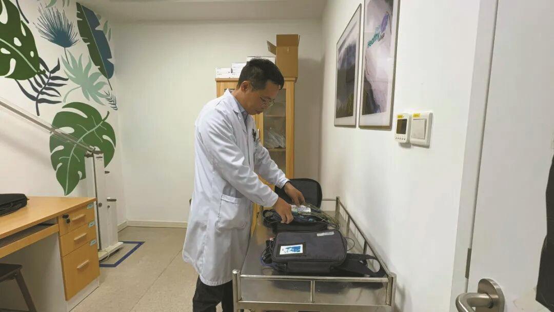 医生为患者准备检测仪器。